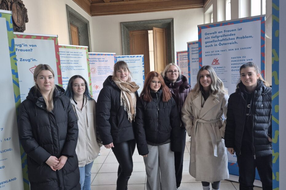 Im Rahmen der Ausstellung „Zivilcourage bei Partnergewalt und häuslicher Gewalt“ der Initiative StoP – Stadtteile ohne Partnergewalt im Rathaus Pinkafeld erhielten die Schülerinnen der 4 HLSP mit Schwerpunkt Familienarbeit wertvolle Einblicke in das Thema häusliche Gewalt und Gewalt in Partnerschaften.